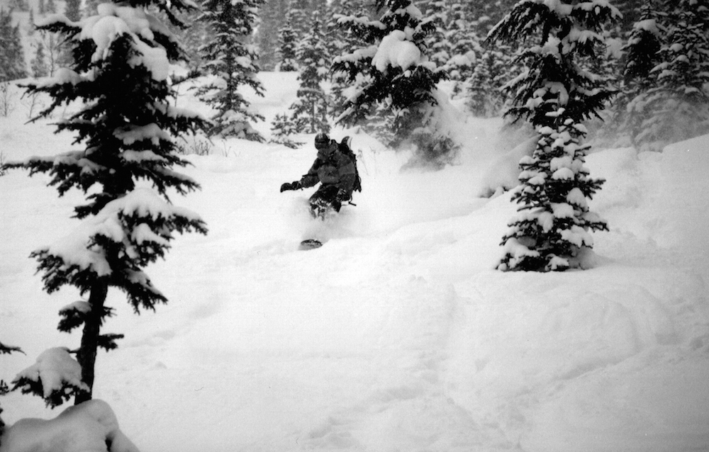 All of these recent trips down memory lane got me thinking about my own photographic history. I don't have a lot of photos of me actually snowboarding, so the ones I do have, I treasure. Like the following from Rogers Pass, BC during the winter of 2003: a heelside turn in thigh deep powder.
