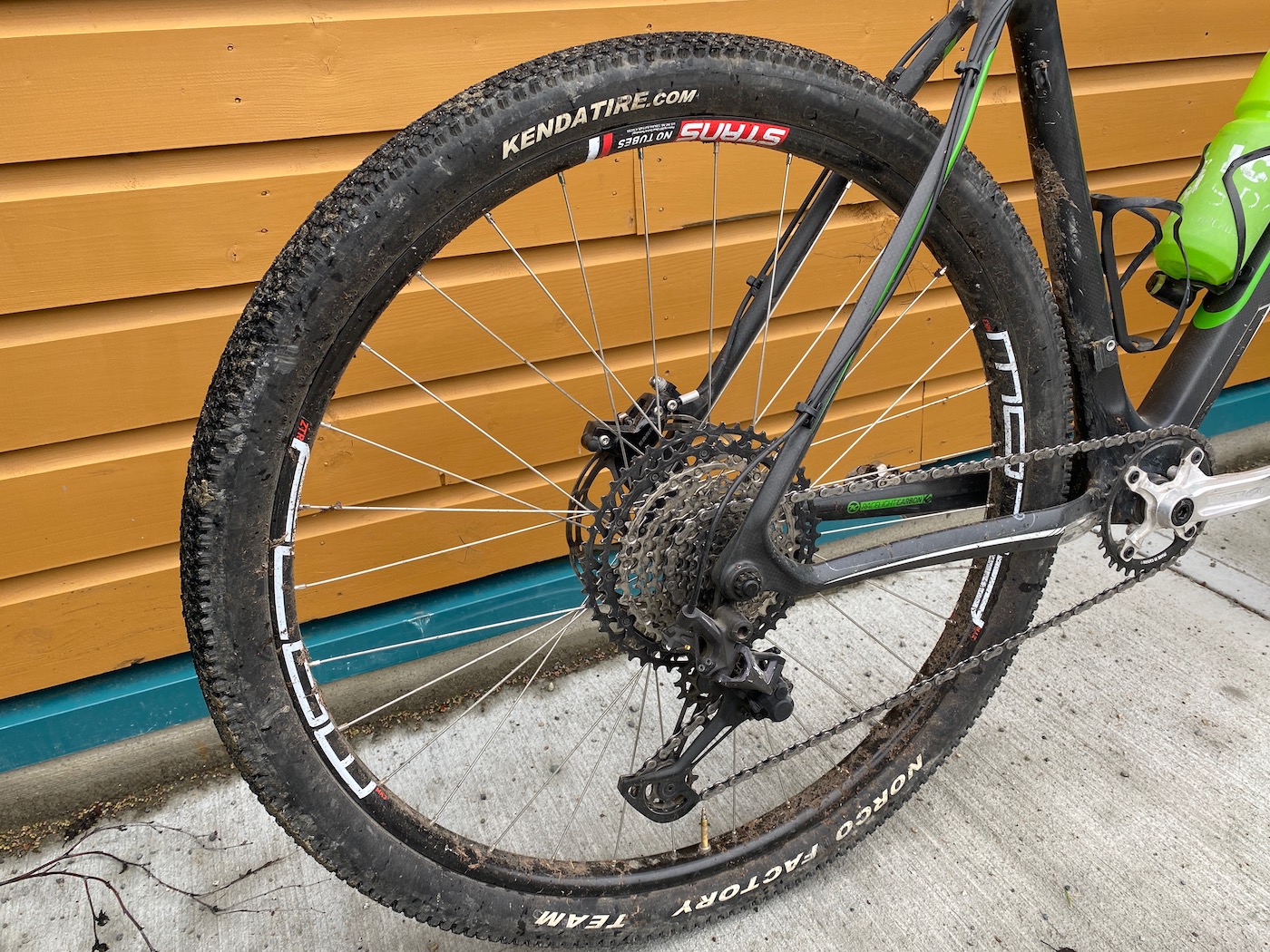 So come April 2022, to avoid buying another $130 tire I grabbed one of the Norco Factory Teams from its hook and mounted it on my rear wheel.