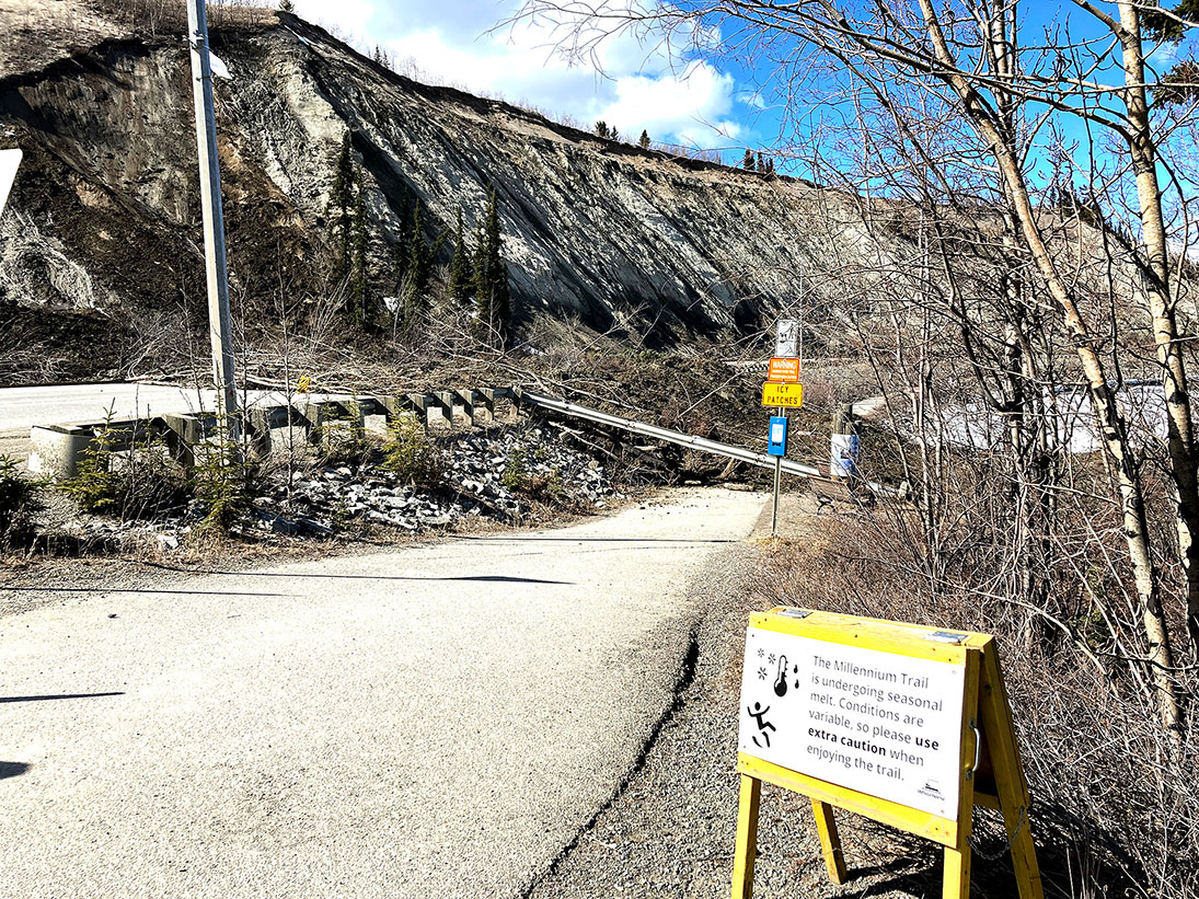 On May 2, 2022 a big landslide shut down Whitehorse's Robert Service Way.