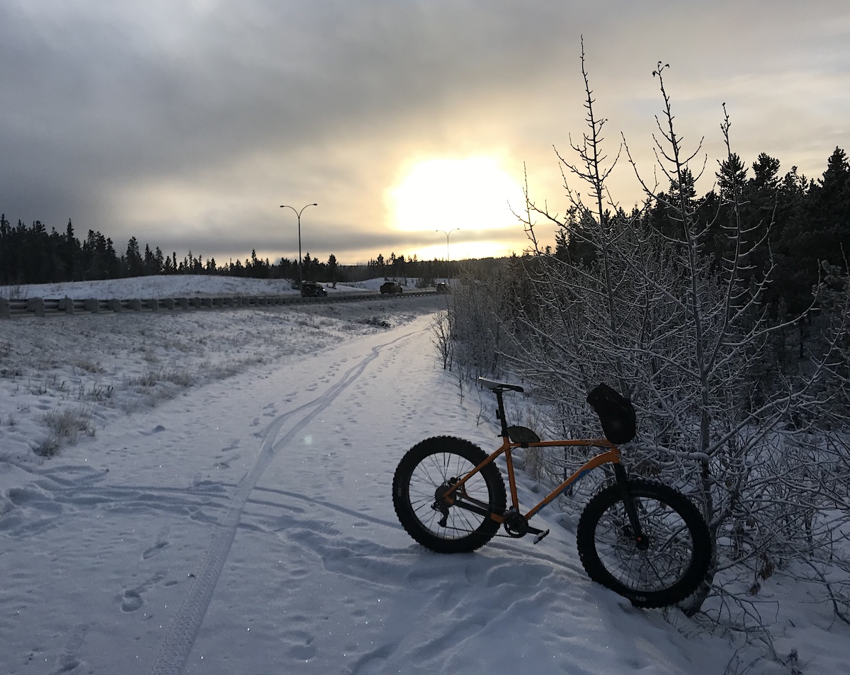 I ride my bike to and from work at least three times per week. It's about 8 km per way, depending on the route I choose to follow. In winter, I ride my fat bike. In summer, spring and autumn, my Cove.