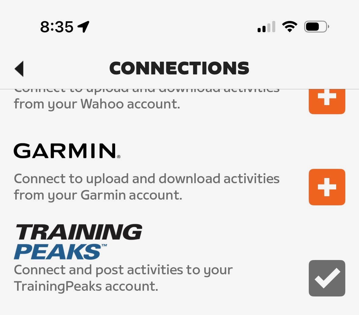 Curious to find solutions that didn't require Strava nor buying a $400 Apple Watch, I tried turning on different settings and experimenting with various processes. I poked around in TrainingPeaks and Apple Health but that data simply wasn't moving to where I wanted it to go.