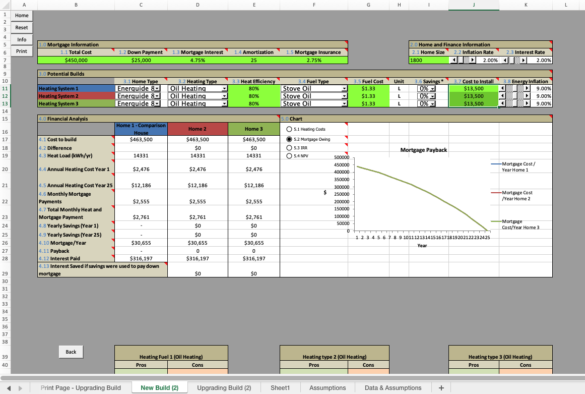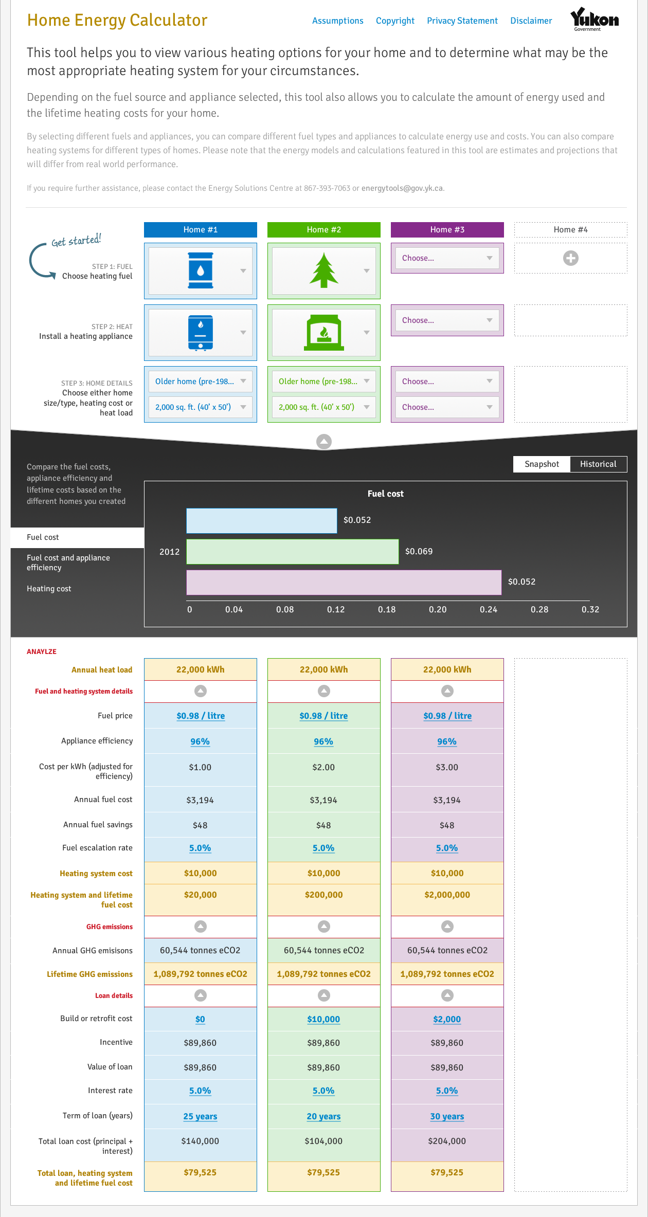 The vision for the web-based calculator was to enable users to estimate and compare the various building, heating and mortgage long-term costs associated with constructing or retrofitting a residential home.