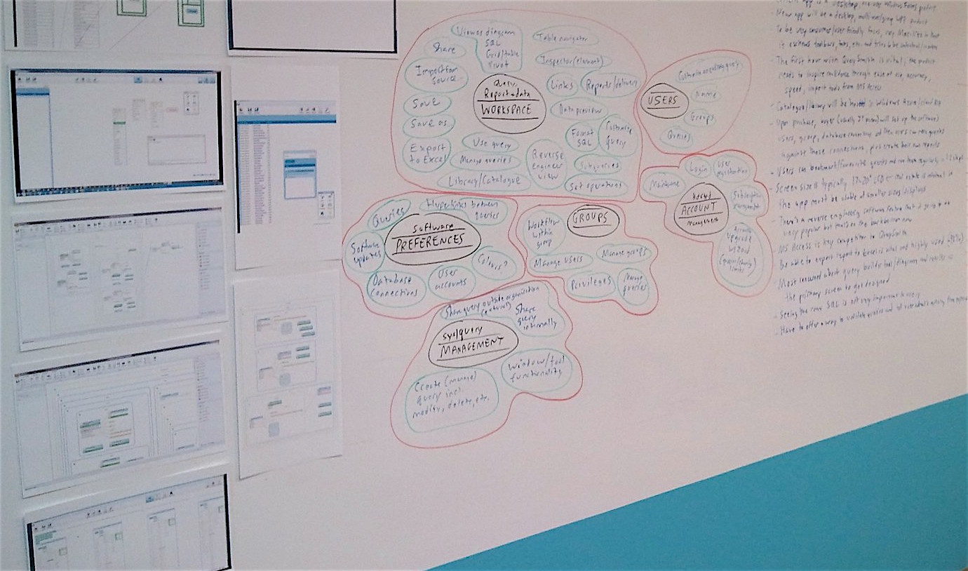 The majority of my initial work on the WPF software took place via phone-calls, video chats and collaborative whiteboard sketching. Together with the developer I talked through issues pertaining to the current product, what they wanted to achieve with the new software and discussed the gaps between.